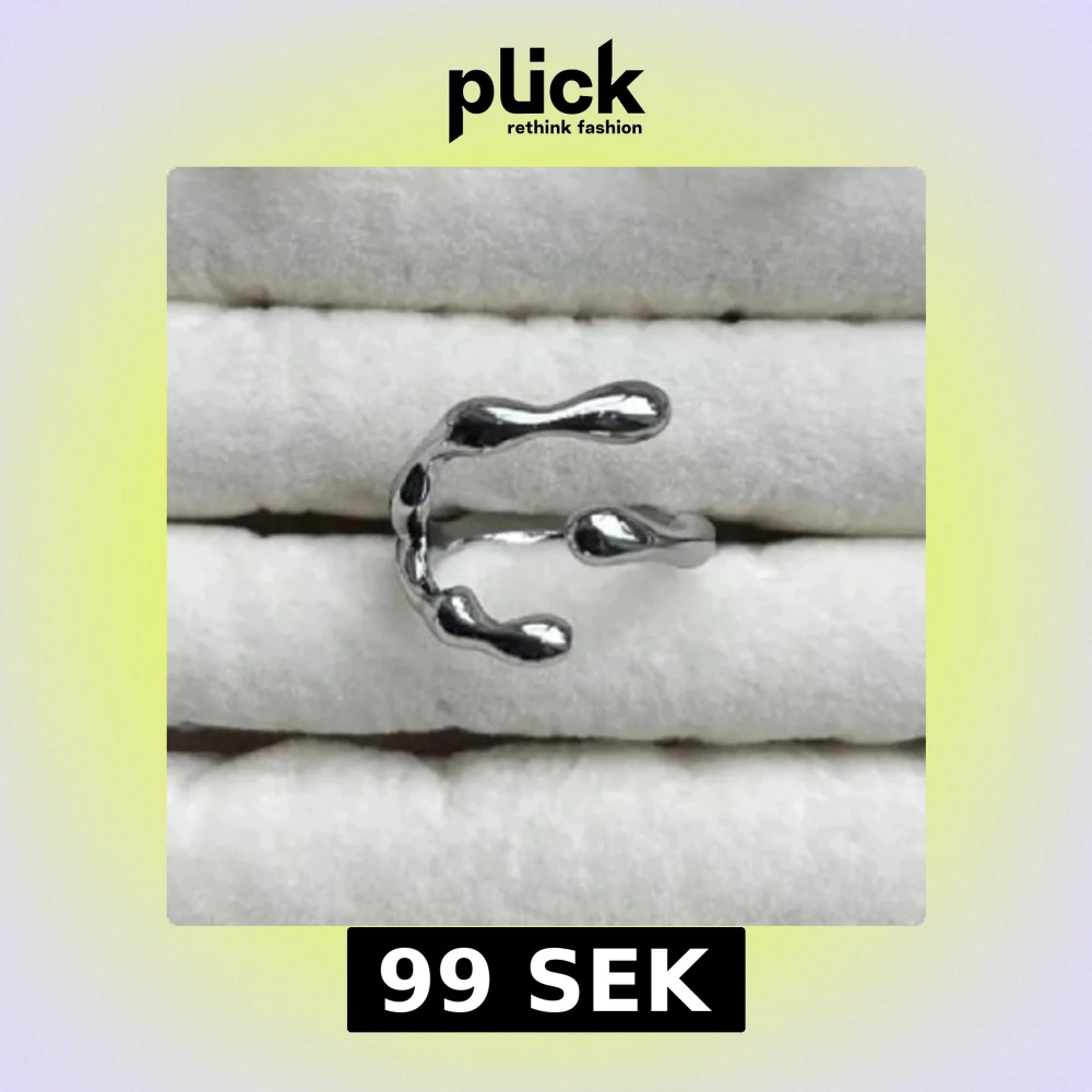 Säljer en unik och modern ring i silver med en organisk, vågig design. Perfekt för att ge en stilren och konstnärlig touch till din look.