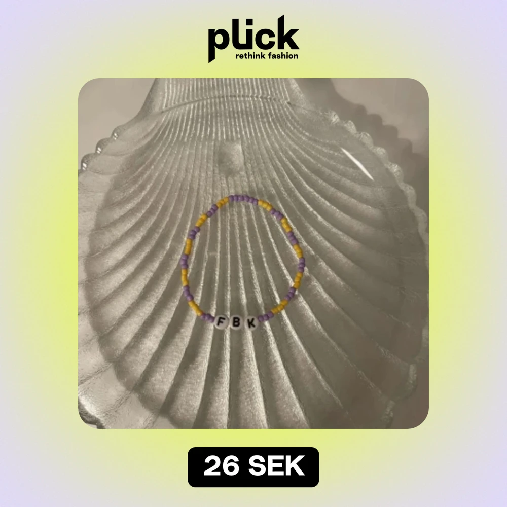 Säljer ett supergulligt armband med färgglada pärlor i lila och gult. Armbandet har bokstavspärlor som bildar 'FBK'. Perfekt för att ge en personlig touch till din stil! 🟣🟡