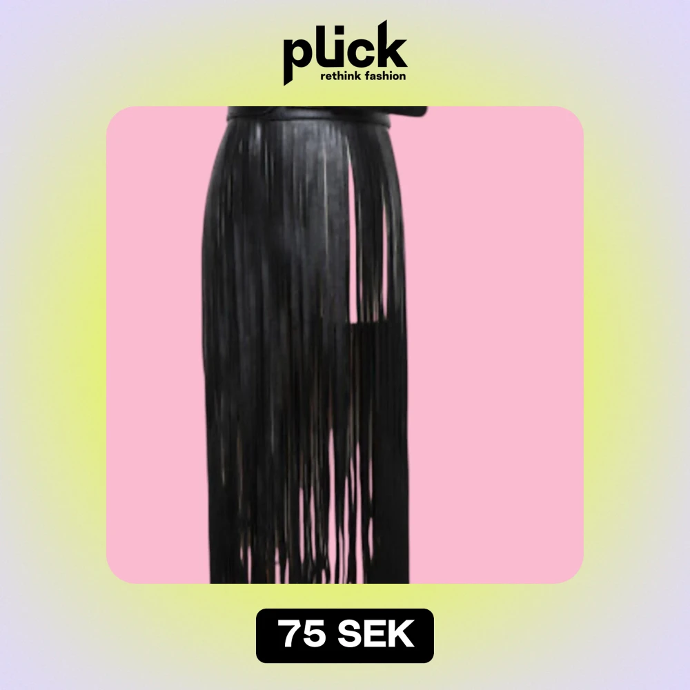 Säljer en oanvänd lång fransad svart läderbälte i fri storlek. Mycket stiligt! Perfekt för att ge din outfit det där lilla extra. Kontakta mig om du är intresserad!