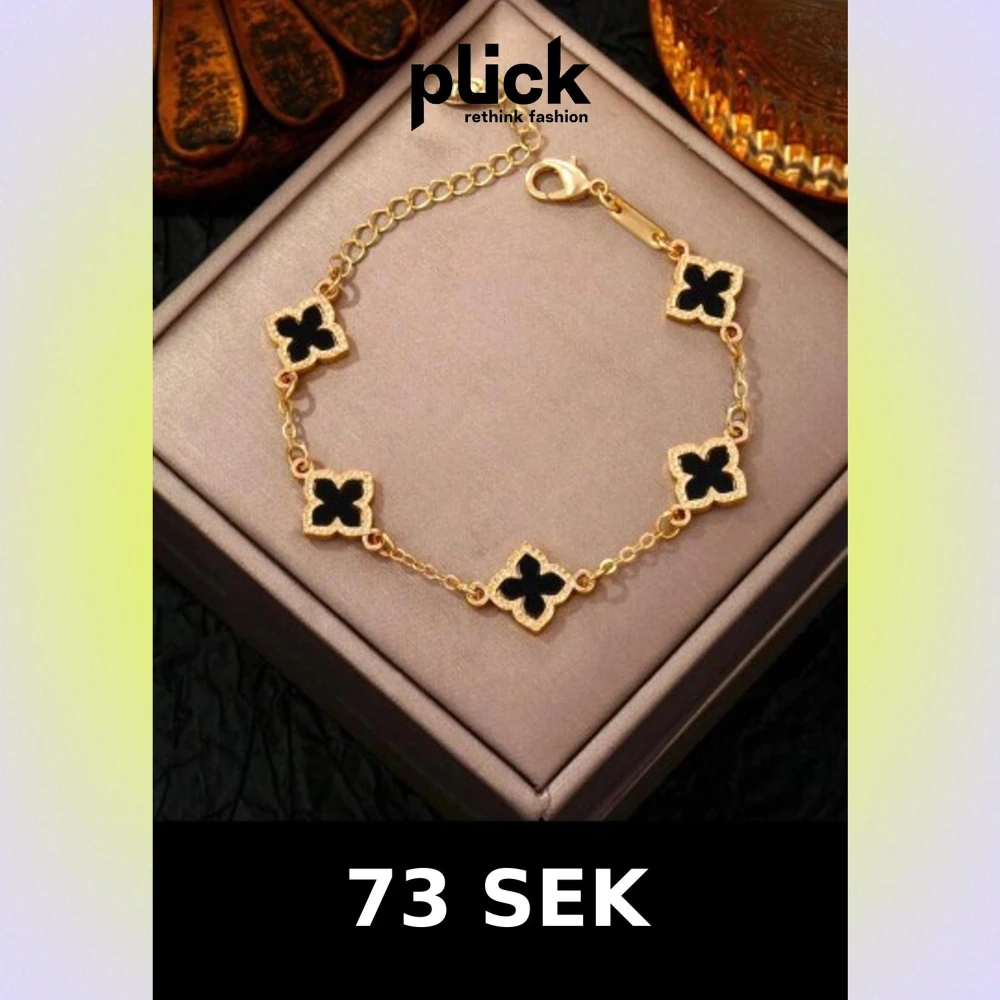 Snyggt med fem svarta klöverformade detaljer. Kedjan är tunn och har ett justerbart lås. Perfekt för dig som gillar stilrena och unika smycken med en touch av lyx.