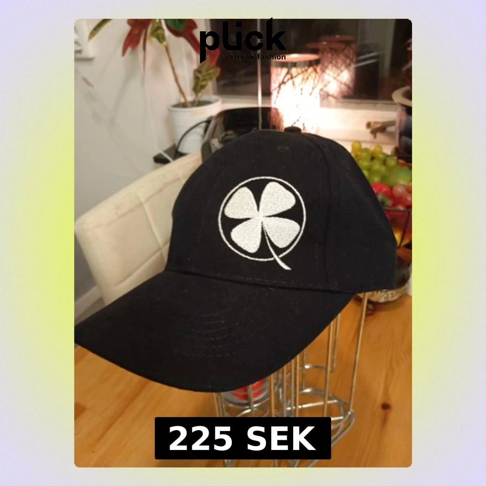 Svart keps med vit broderad klöver på framsidan och texten 'klovenas.se' på sidan. Klassisk böjd skärm och justerbar rem bak. Tillverkad i slitstark bomull, perfekt för dig som vill ha en clean och stilren look.