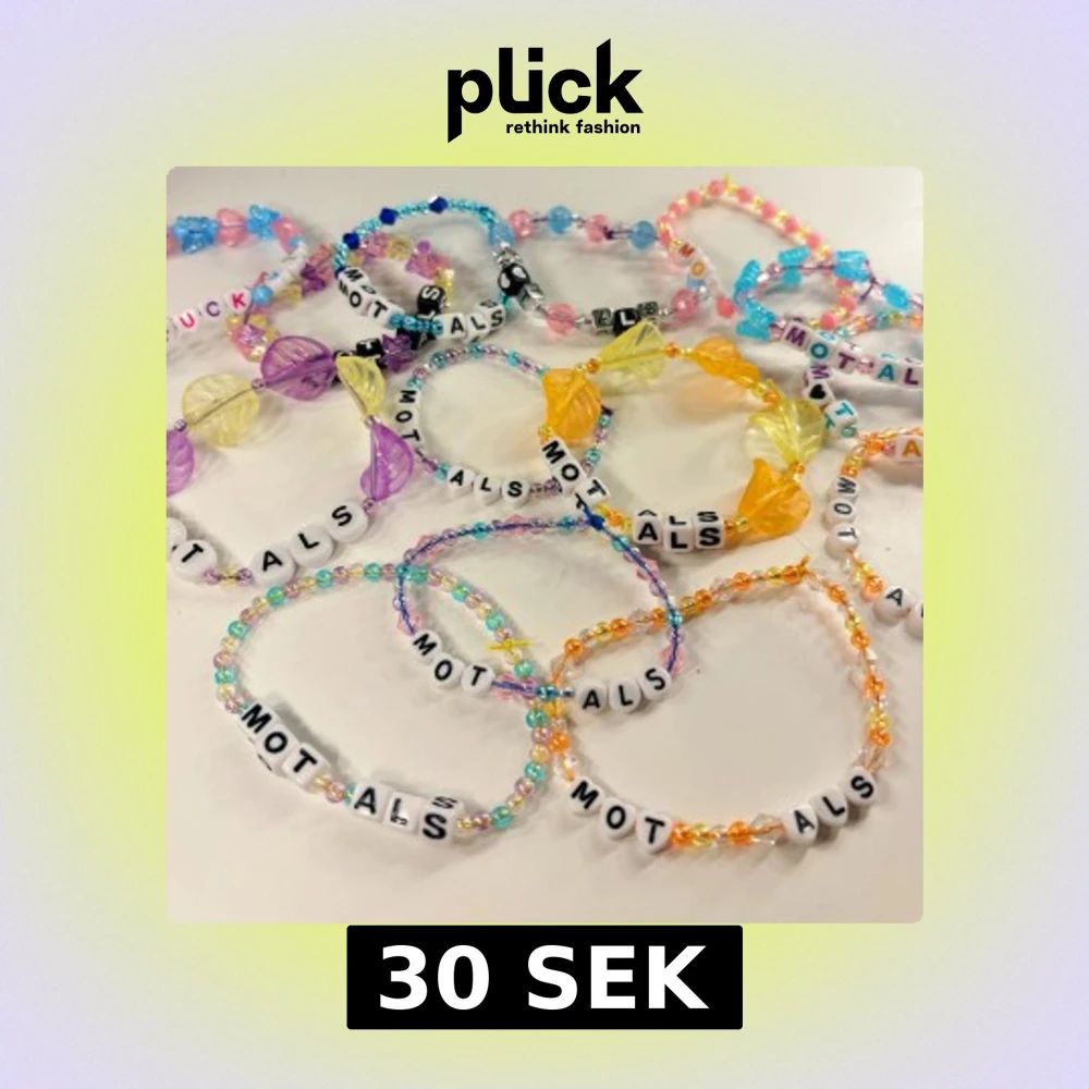 Säljer ett set av färgglada pärlarmband med bokstavspärlor som är MOT ALS. Armbanden har pärlor i olika färger som lila, gul, orange och blå. Perfekt för att ge en personlig touch till din stil. Alla pengarna går till forskning mot ALS. 30kr per band.