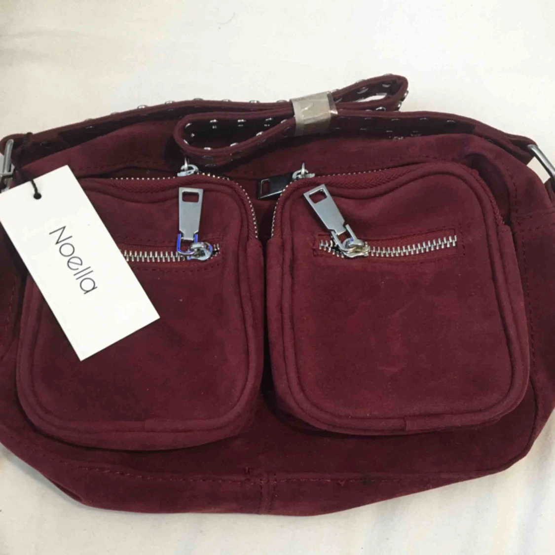 Oanvänd vinröd mocka väska Dustbag medföljer