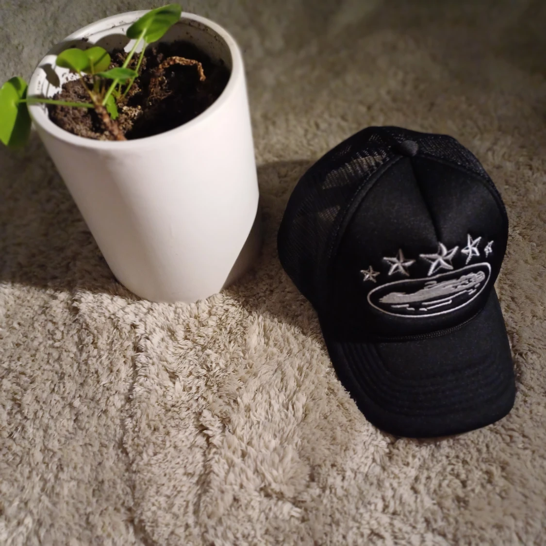 đFĂ€rg: Kepsen Ă€r svart med ett vitt corteiz mĂ€rke pĂ„ framsidan. Ăver mĂ€rket finns det fem vita stjĂ€rnor, vilket ocksĂ„ finns pĂ„ högra sidan av kepsen!! đStorlek(All sizes): Kepsen storlek gĂ„r att justera, vilket betyder att den passar allas huvud. â»ïžKvaliteten: Kepsen Ă€r riktigt bra kvalitet. Endast anvĂ€ns ett par gĂ„nger. Det finns inga mĂ€rken och inga flĂ€ckar. đ§ŸPriset: Priset kan diskuteras, men det gĂ„r inte att dra ner pĂ„ Priset för mycket. đ§șMaterial: Materialet Ă€r mestadels Bomull.