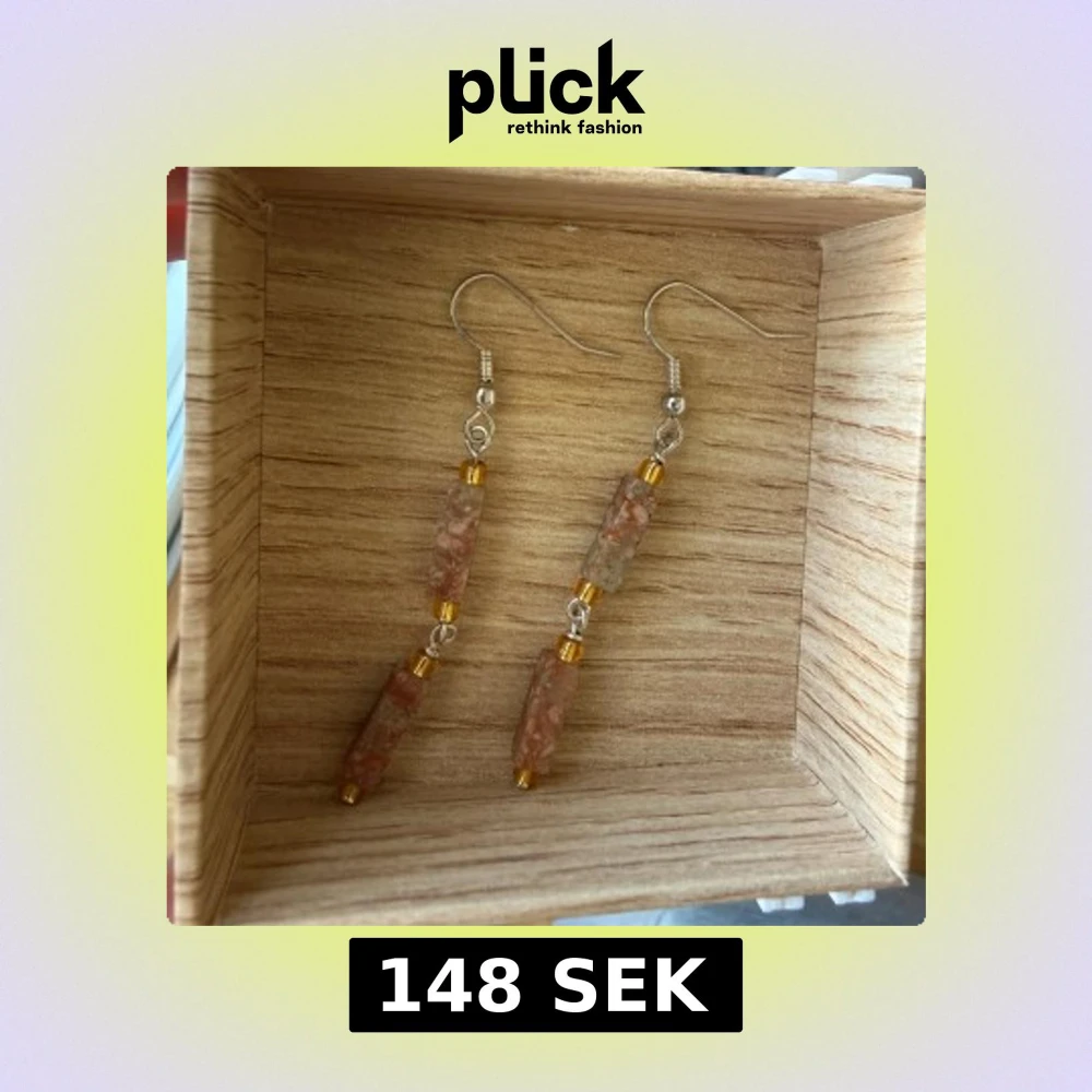 • Unika handgjorda örhängen med två avlånga naturstenpärlor i bruna och beige toner, dekorerade med små guldfärgade detaljer. • Krokar i silverfärg. • Perfekta för dig som vill sticka ut med ett naturligt smycke. • Mycket fin kvalité.