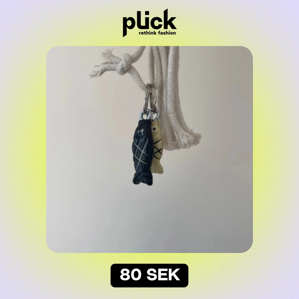 Liten nyckelring i polymerlera. Vit fisk: 3,5 cm Svart fisk: 4 cm Köps separat eller tillsammans. Meddela mig innan om du köper båda så skickar jag dem i samma frakt!