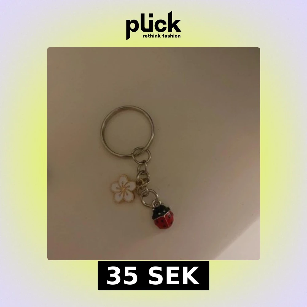 Charmig nyckelring med en söt blomma och en färgglad nyckelpiga. Perfekt för att ge dina nycklar en personlig touch.