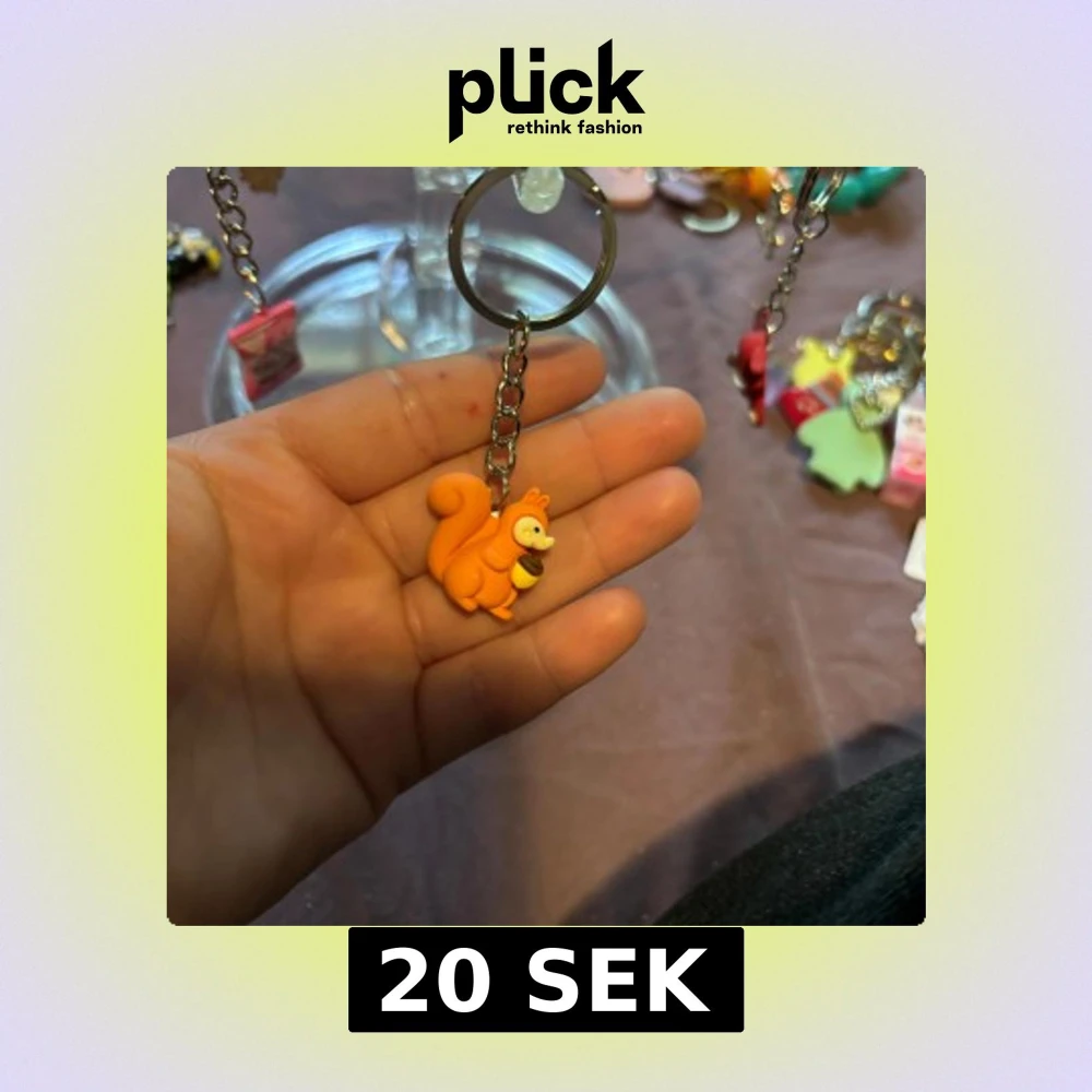 Supergullig nyckelring med en orange ekorre som håller ett ekollon. Perfekt accessoar till väskan eller nyckelknippan för dig som gillar djur och vill ha något lekfullt och färgglatt.