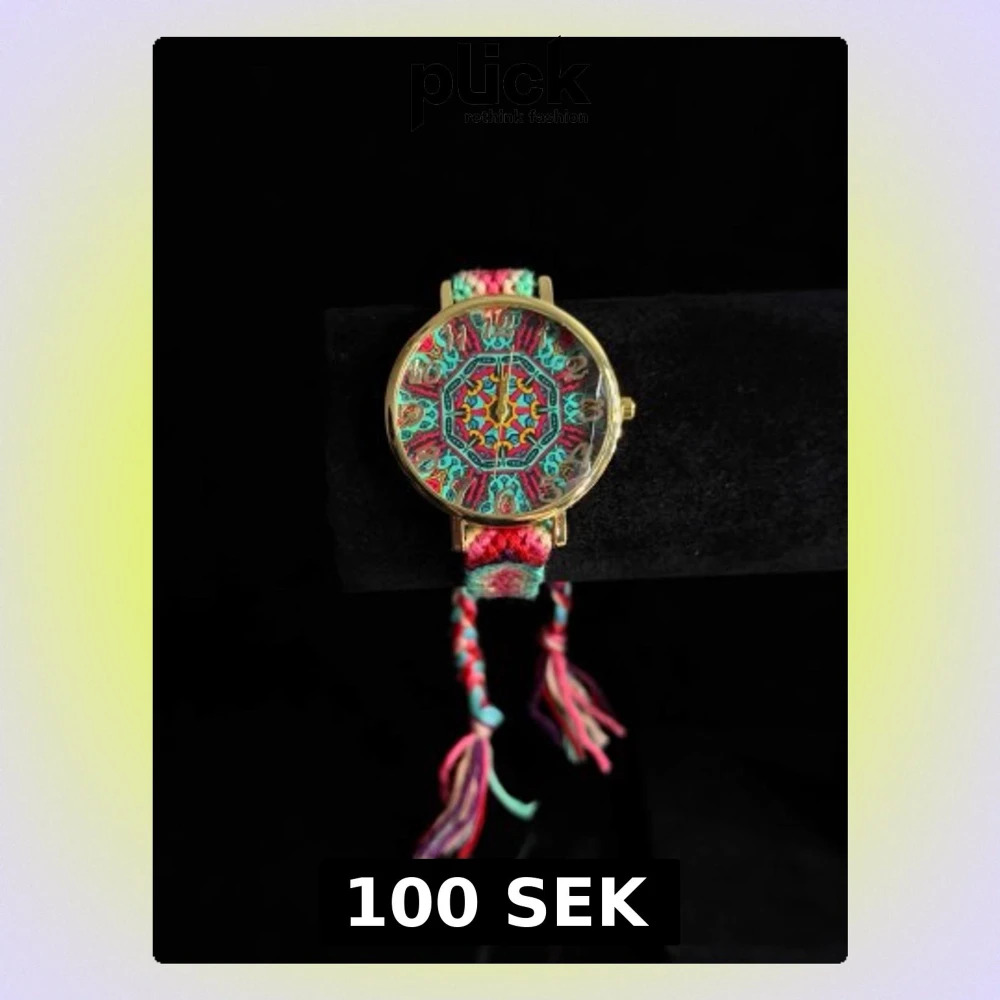 Mandala Essence är en färgstark och bohemisk armbandsklocka med ett vackert mandalamönster på urtavlan. Den runda boetten i guldfinish kombineras med ett justerbart textilarmband i flera harmoniska färger, vilket ger ett unikt och personligt uttryck. Klockan är lätt och bekväm att bära och passar perfekt för dig som gillar boho-stil, festivalvibbar eller vill addera färg till din vardagslook. Helt ny.