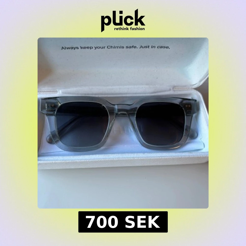 Snygga solglasögon från Chimi i transparent grått acetat med mörka glas. Rektangulär form och diskret logga på skalmen. Perfekta för att lyfta din stil med en modern touch.