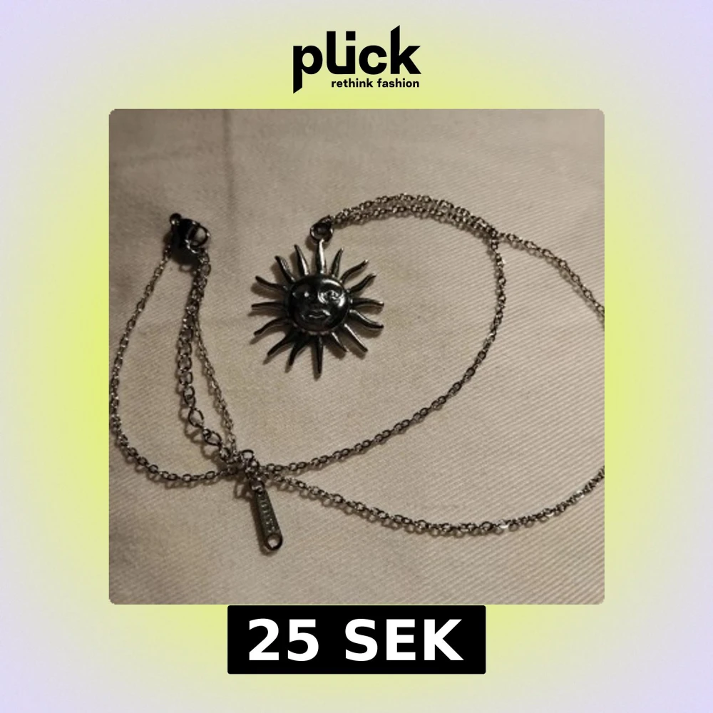 Ett silverfärgat halsband med en sol, i rostfritt stål. 40+5 cm justerbart. Helt nytt! Jättefint.