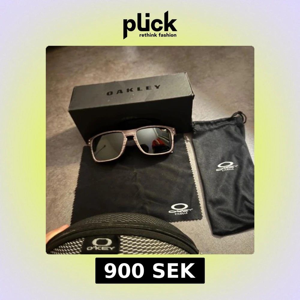 Snygga Oakley Holbrook solglasögon med fyrkantig form och grå träliknande bågar. Spegelblanka mörkgrå linser och coola silverdetaljer vid gångjärnen. Kommer med originalfodral, putsduk och box. Perfekta för dig som vill ha en sportig och stilren vibe. Helt ny pris 2700kr.