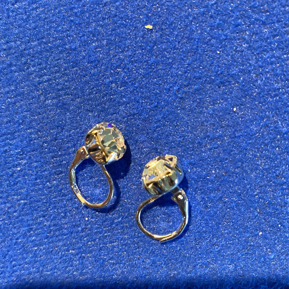 Små silverfärgade örhängen med stor swarovskikristall. Oanvända.