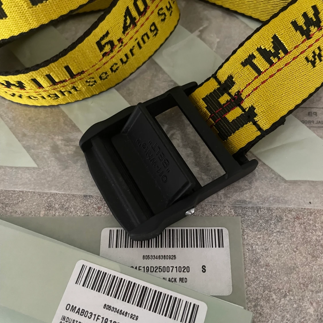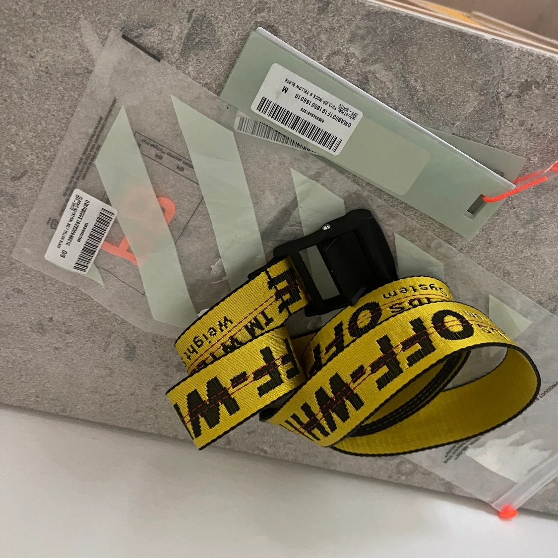 Klassiskt industribälte Gult ”Industrial” bälte med svart spänne. "Off-White BELT" snidat på spännet. Bältet är i ny skick och endast använts ett par gånger. Alla tags finns kvar samt påse osv.