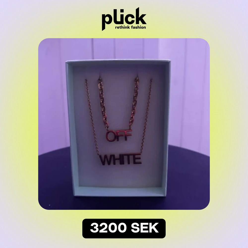 Off white guld halsband. Bara använt ett fåtal tillfällen. Nypris 451 dollar vilket motsvarar ca 5000 svenska. Jag tänker mig 3200 då det finns kvitto och inga defekter över huvud taget. Kan gå ner vid snabb affär.