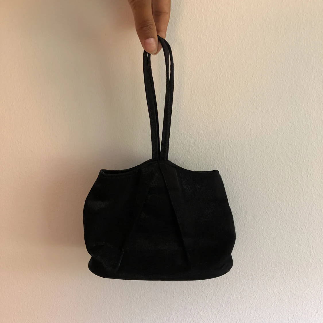 Aftonväska svart glansigt material.
