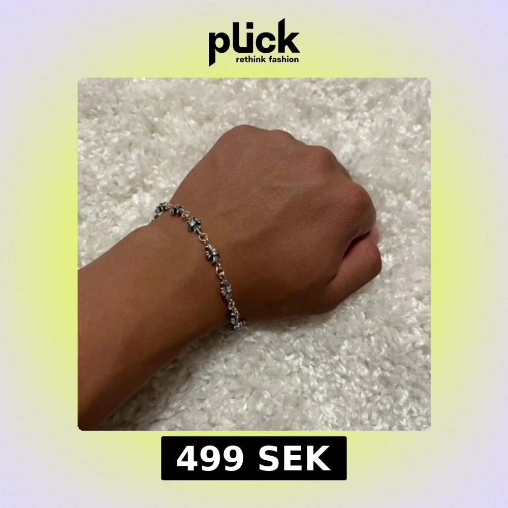 Snyggt silverarmband med små blommor längs hela kedjan. Armbandet har en klassisk låsdel och är i äkta silver, vilket syns på stämpeln. Perfekt för dig som gillar detaljerade smycken med en cool touch.
