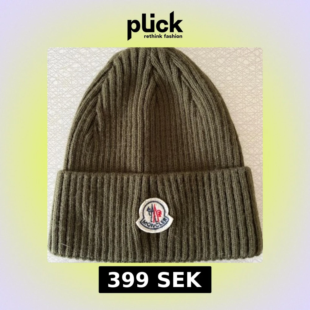 Snygg olivgrön mössa från Moncler med ribbad stickning och uppvikt kant. Märkets klassiska logga är broderad framtill. Perfekt för dig som vill ha en stilren och varm accessoar med exklusiv känsla.