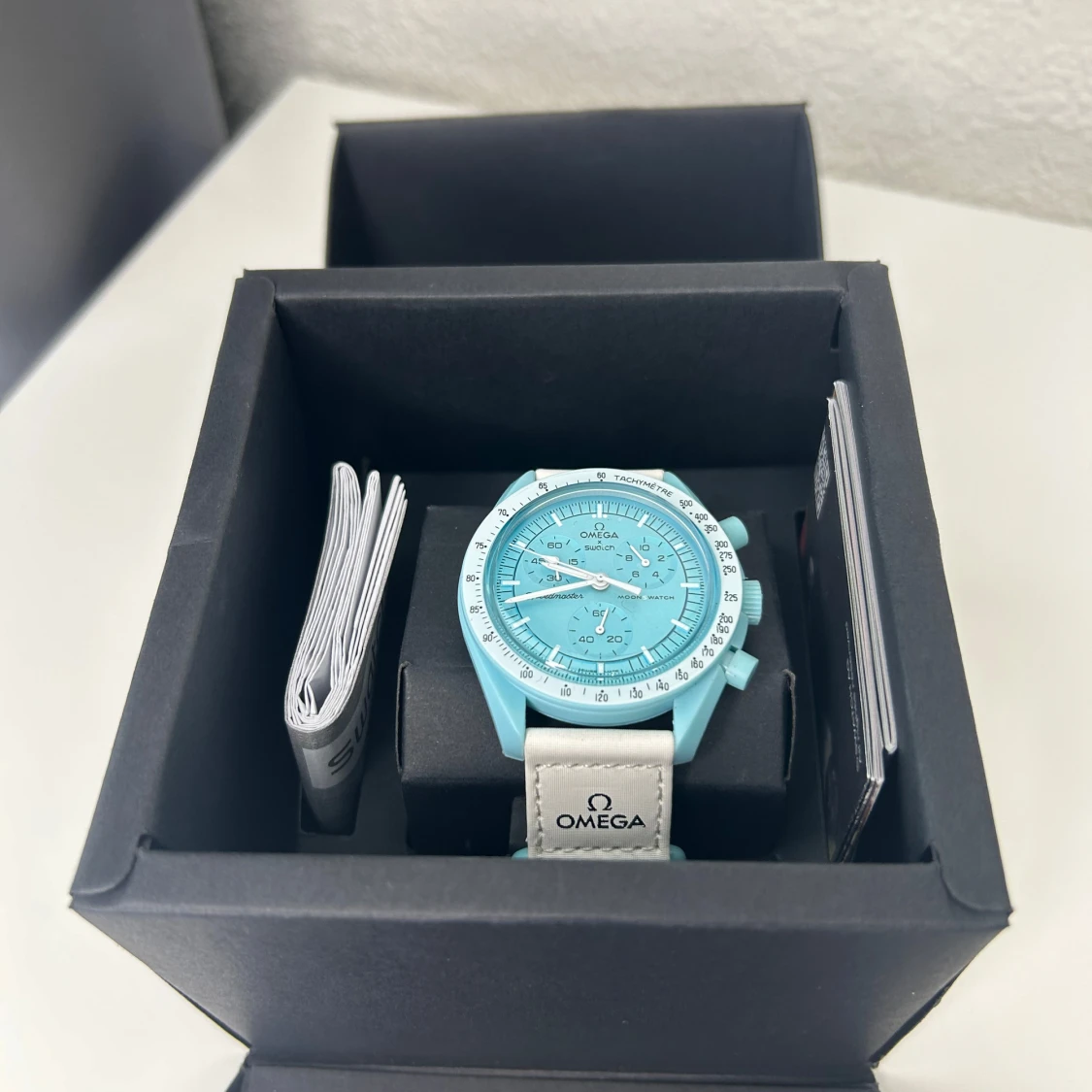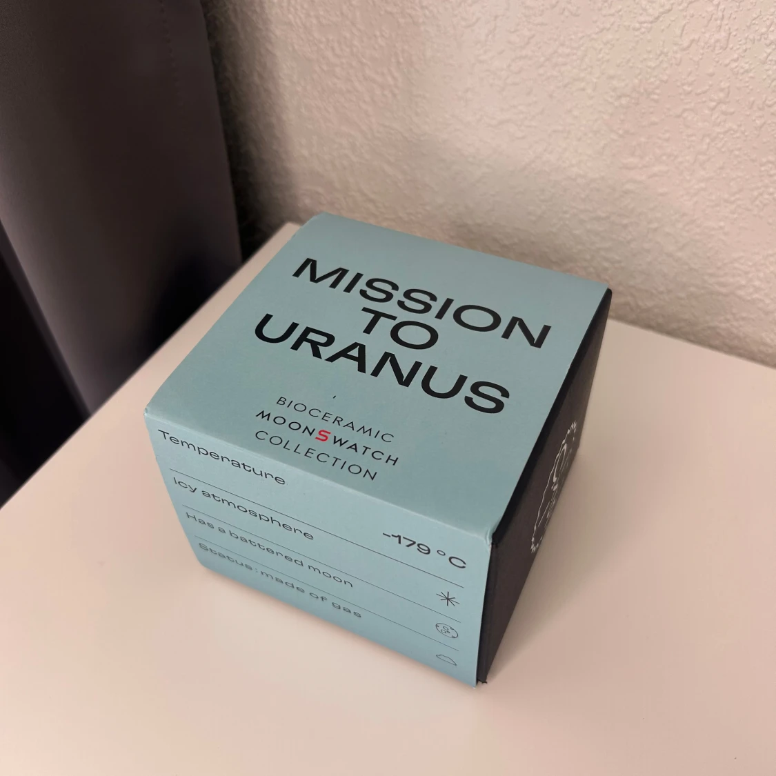 Omega x Swatch Moonswatch Mission to Uranus i mycket fint skick. 42 mm, quartzverk, biokeramik och originalband. Pris: 2000 Plats: Jönköping – kan skickas.