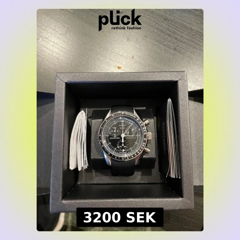 Säljer en modifierad omega x swatch moonswatch. Klockan är utrustad med en stål boett för lyxigare känsla och snyggare look. Klockan har även gummiarband på. Klockan är även helt ny.
