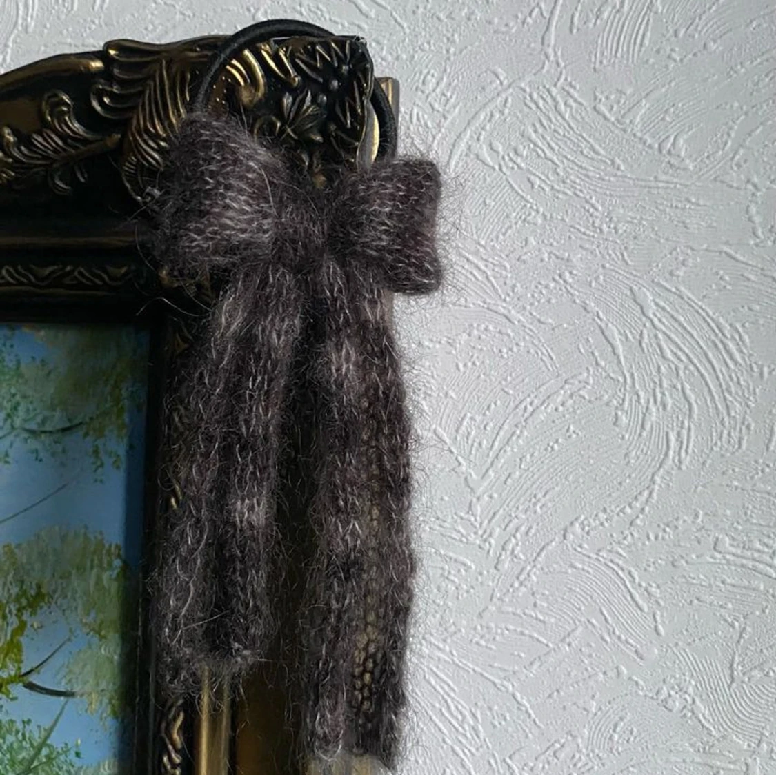 Gullig stickad rosett av mig i fluffigt garn 35kr+porto❤️