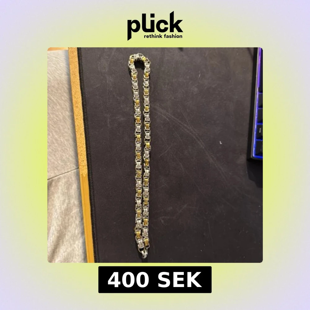Säljer ett chunky halsband med boxkedja i både guld- och silverfärgade länkar. Kedjan har en cool, industriell look och stängs med en karbinhake. Perfekt för dig som gillar att sticka ut med accessoarer som har lite edge.