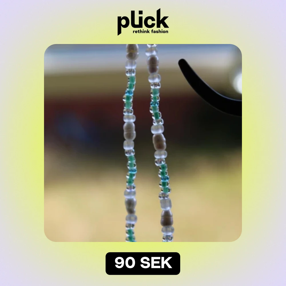 Säljer ett superfint pärlhalsband med turkosa och vita pärlor. Perfekt för att ge en bohemisk touch till din outfit. Halsbandet har en enkel och stilren design som passar både till vardags och fest.