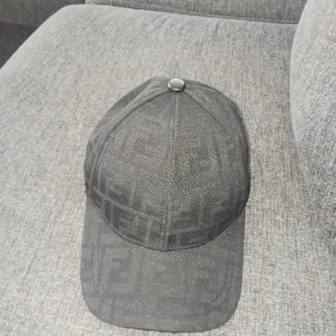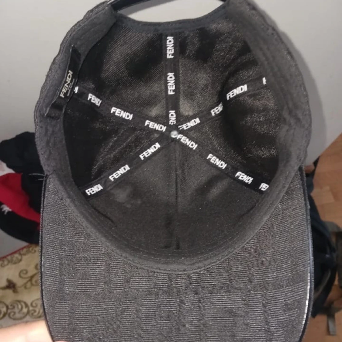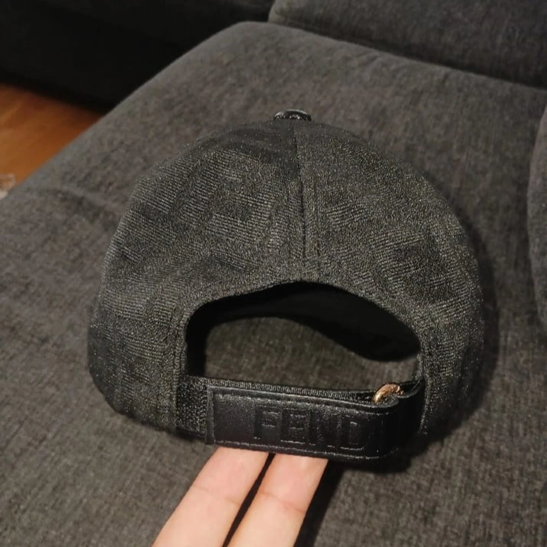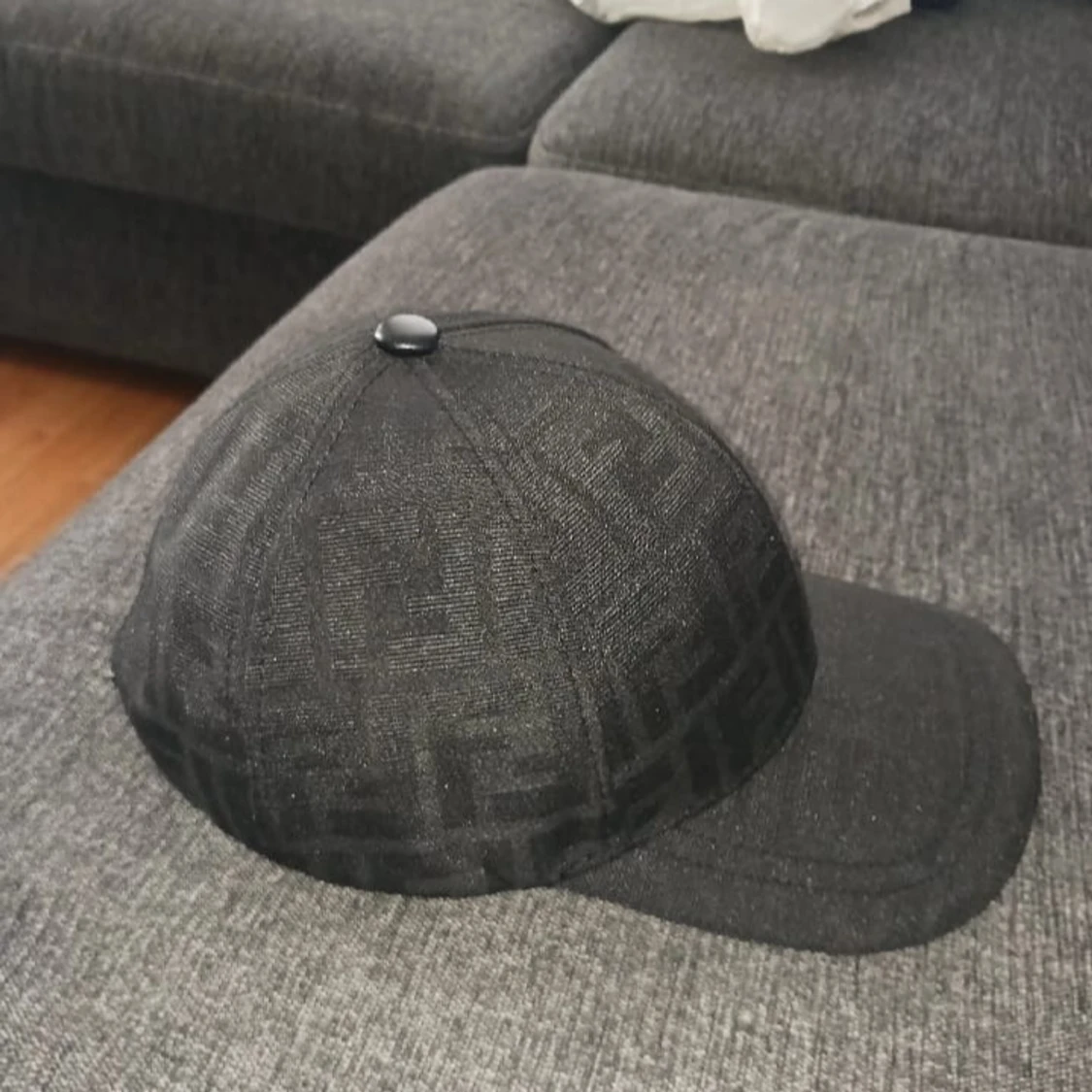 Snygg svart keps från Fendi med klassiskt FF-logomönster över hela kepsen. Justerbar rem baktill med Fendi-tryck och böjd skärm. Tillverkad i ett tygmaterial som känns lyxigt och stilrent, perfekt för dig som vill sticka ut med designeraccessoar.