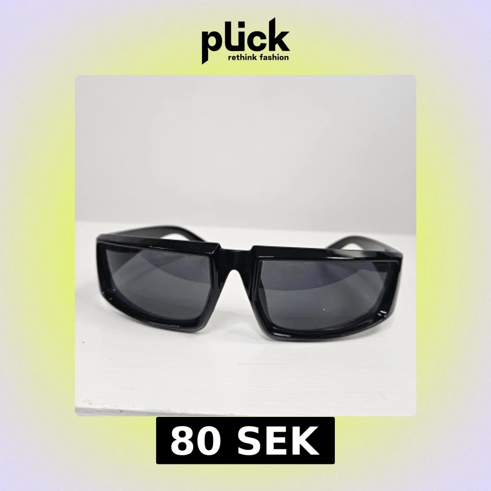 Snygga svarta solglasögon med rektangulära bågar och mörka glas. Glasögonen har en modern, kantig design och breda skalmar som ger en cool och futuristisk look. Perfekta för dig som vill sticka ut med en trendig accessoar.