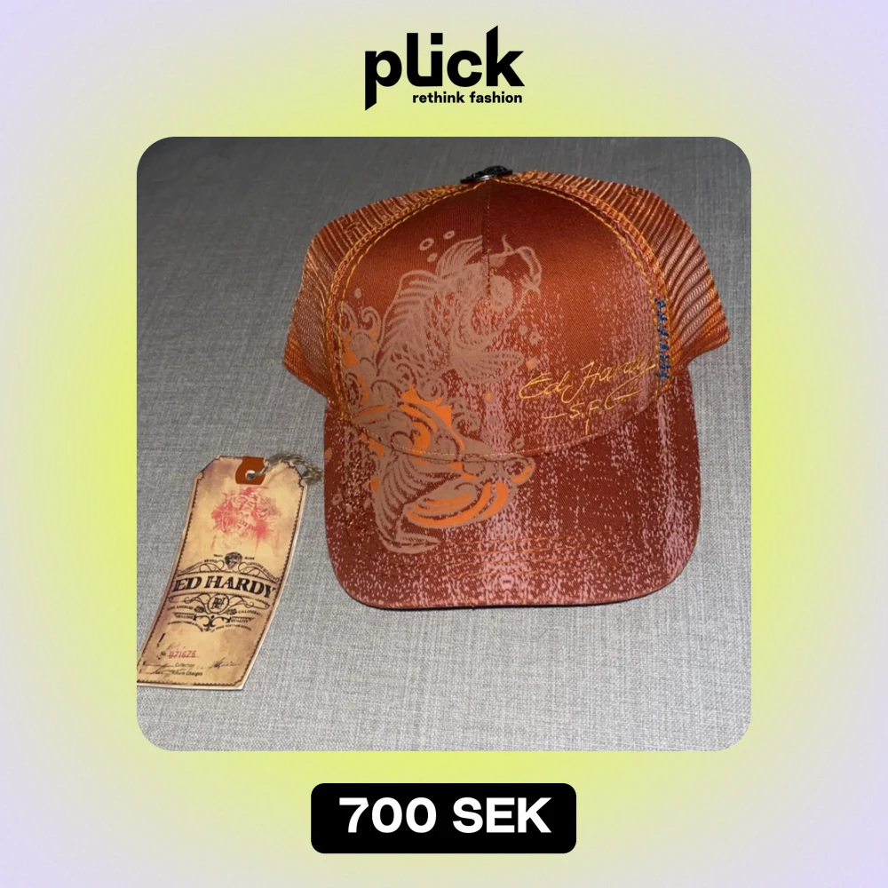 Säljer en jätte fin vintage orange keps från Ed Hardy. Kepsen har en justerbar baksida och en snygg dödskalle-detalj i metall. Helt oanvänd. Originellt pris var 500kr. Pris kan diskuteras.