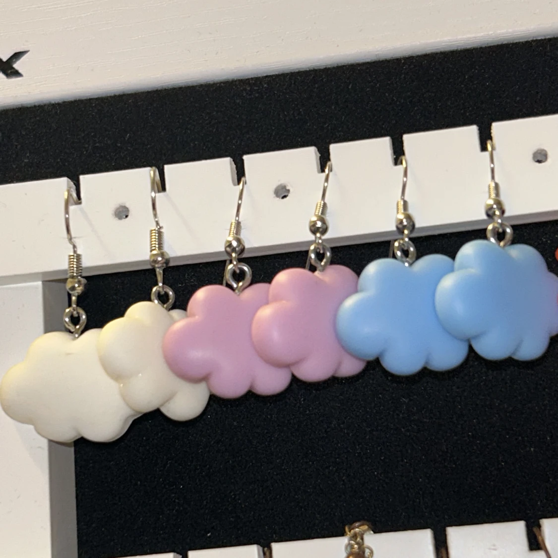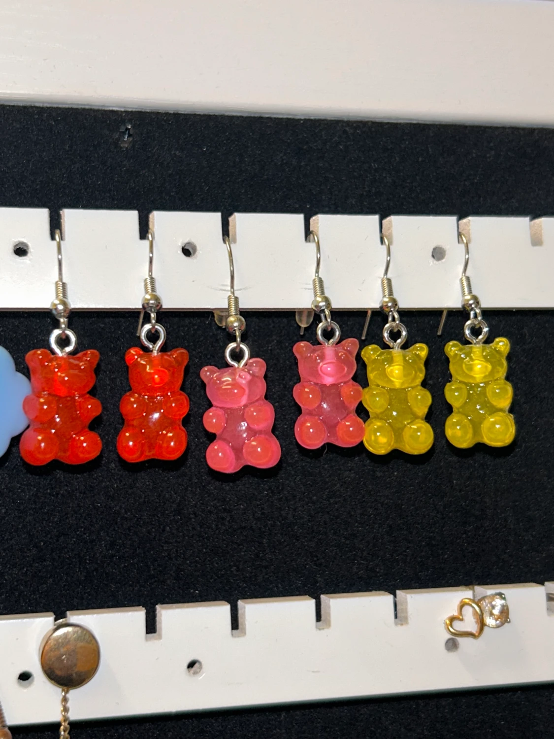 Säljer 2 set av örhängar som kommer inte till användning (hade haft på mig bara 1 gång de lila måln och en gång röda björn) Säljer en par för 10 kr men om man köper en hel set så kostar det bara 20 kr :) frakt är på cirka 15 kr.