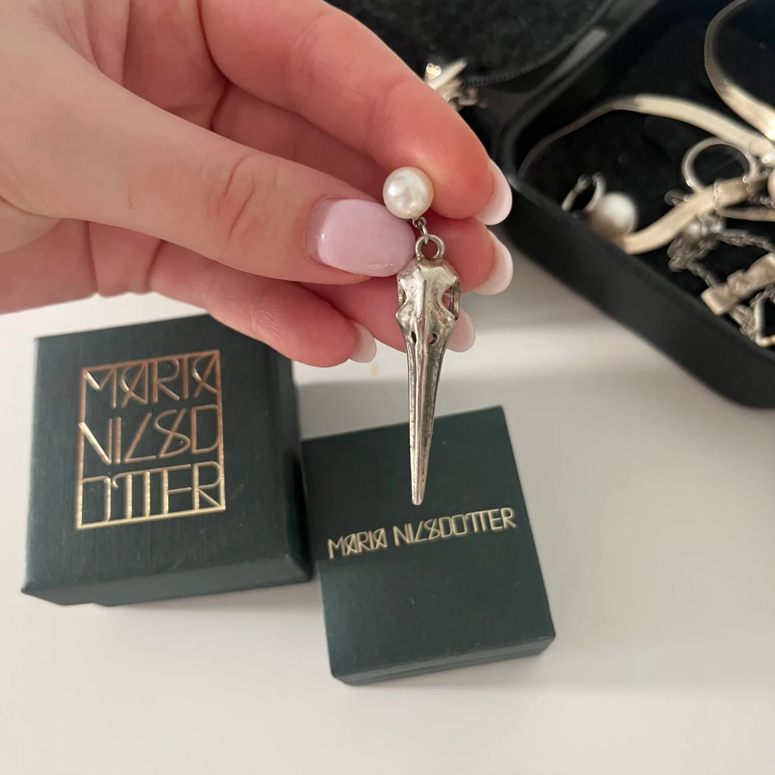 Så coolt silver örhänge som liknar en slags fågel! Så söt med pärlarn och inte alls tungt att ha på sig! OBS: Man får med TVÅ örhängen för detta pris! INTE MARIA