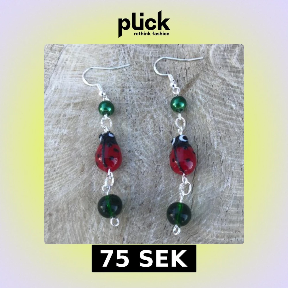 Söta örhängen av nyckelpigor 🐞 och gröna glaspärlor 🌲Finns matchande armband