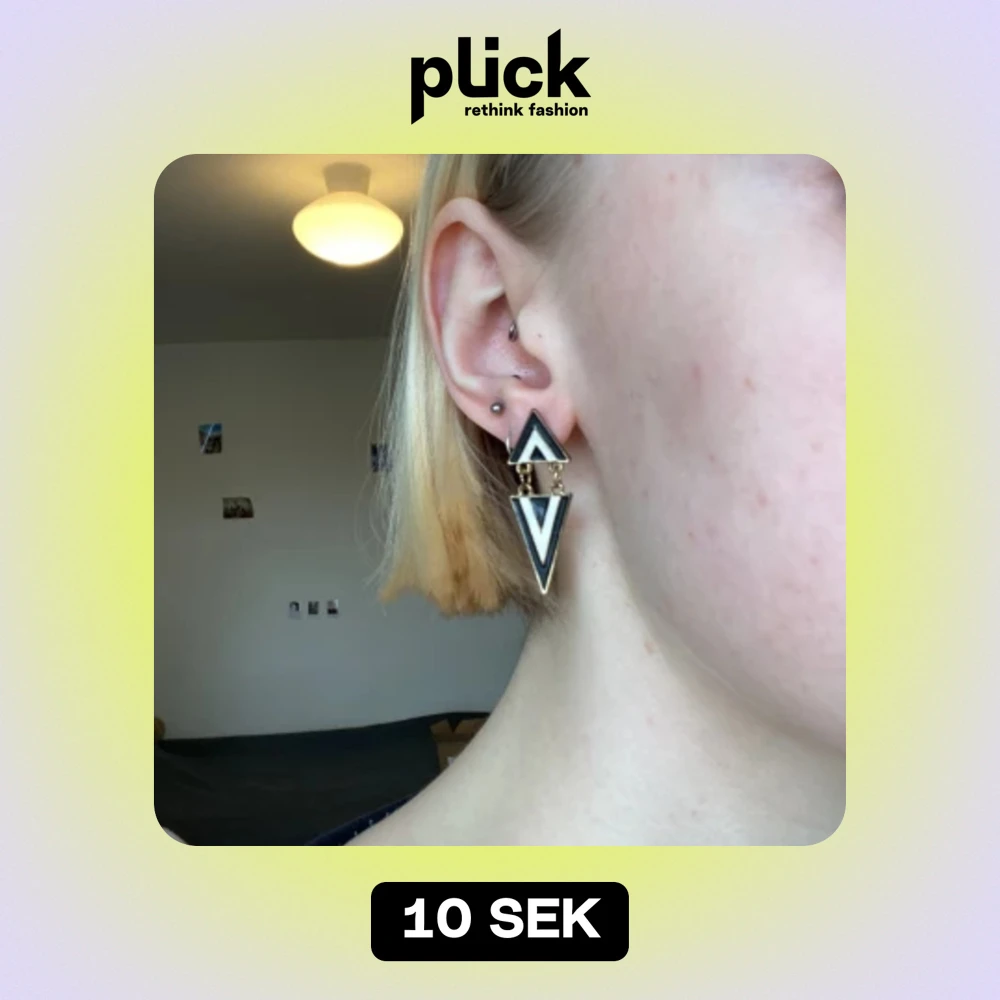 Örhängen i svart, vitt och guldfärg. Notera nyansskillnad på framsidan, ganska slitna och två olika pluppar där bak. Lågt pris pga allt detta.