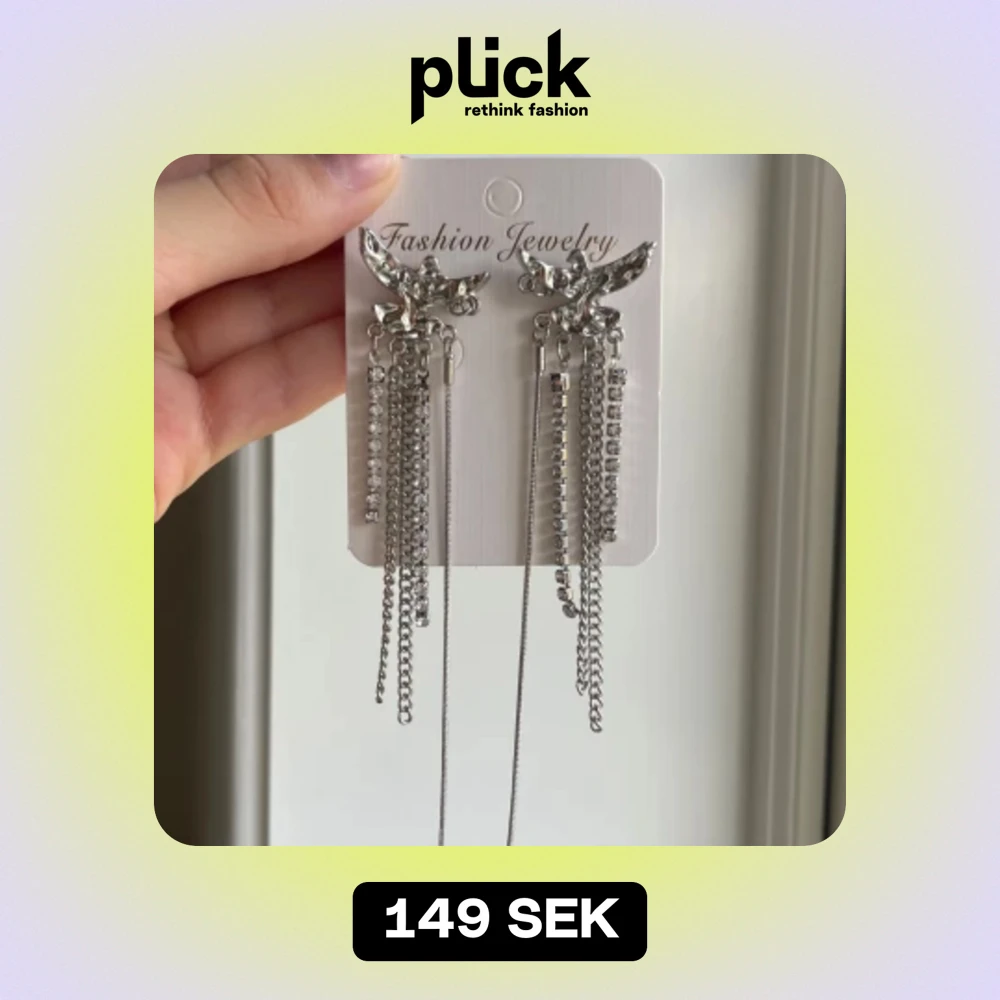 Säljer dessa suuuperfina örhängen som jag tyvärr inte använt då jag har så många örhängen. De väger 7 gram och är ungefär 11 cm långa. Självaste pinnen som är i örat är i äkta silver, på bild 2 kan man se stämpeln men det var svårt att få med på bild