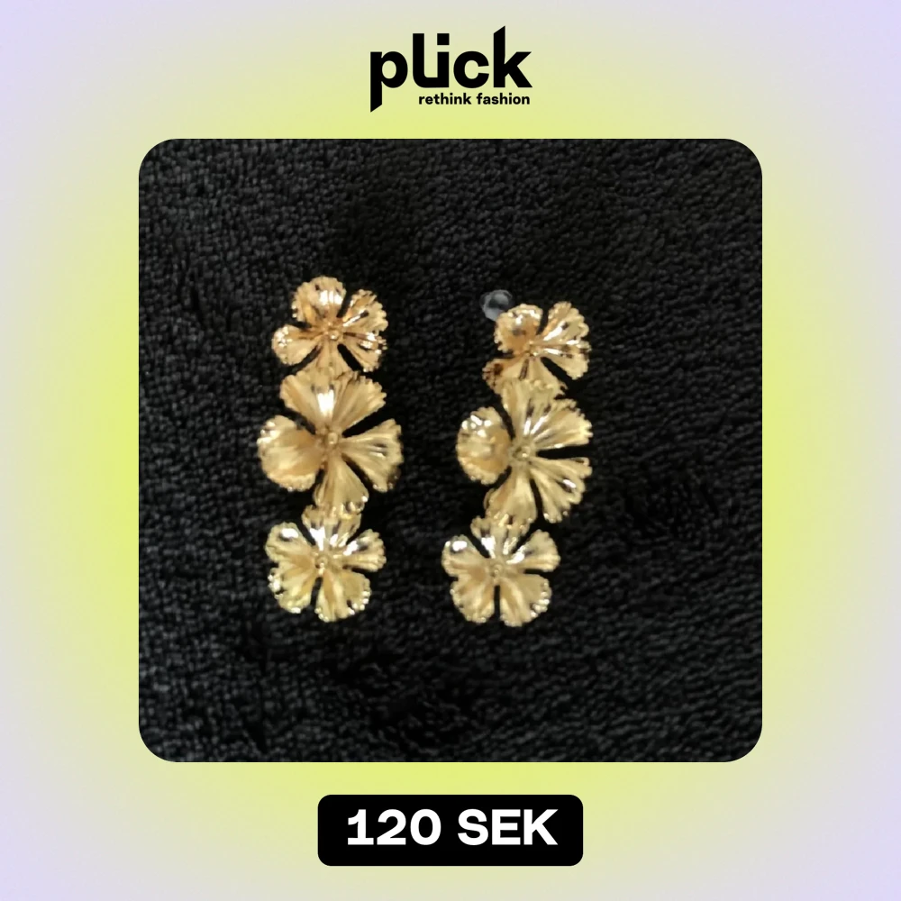 Snygga guldörhängen med flera blommor i rad. Perfekta för att ge en elegant touch till din outfit. Köpta för 220kr (lånade bilder) skriv innan köp🔥 pris kan diskuteras💕