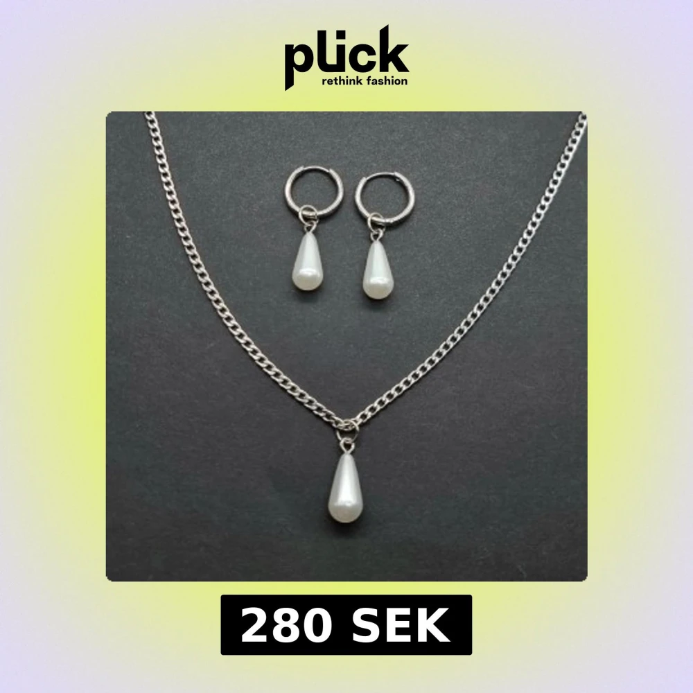 Snyggt smyckeset med halsband och örhängen i silverfärgad metall. Material-rostfritt stål ❤️längd-40cm-45cm, örhängen-3,6cm