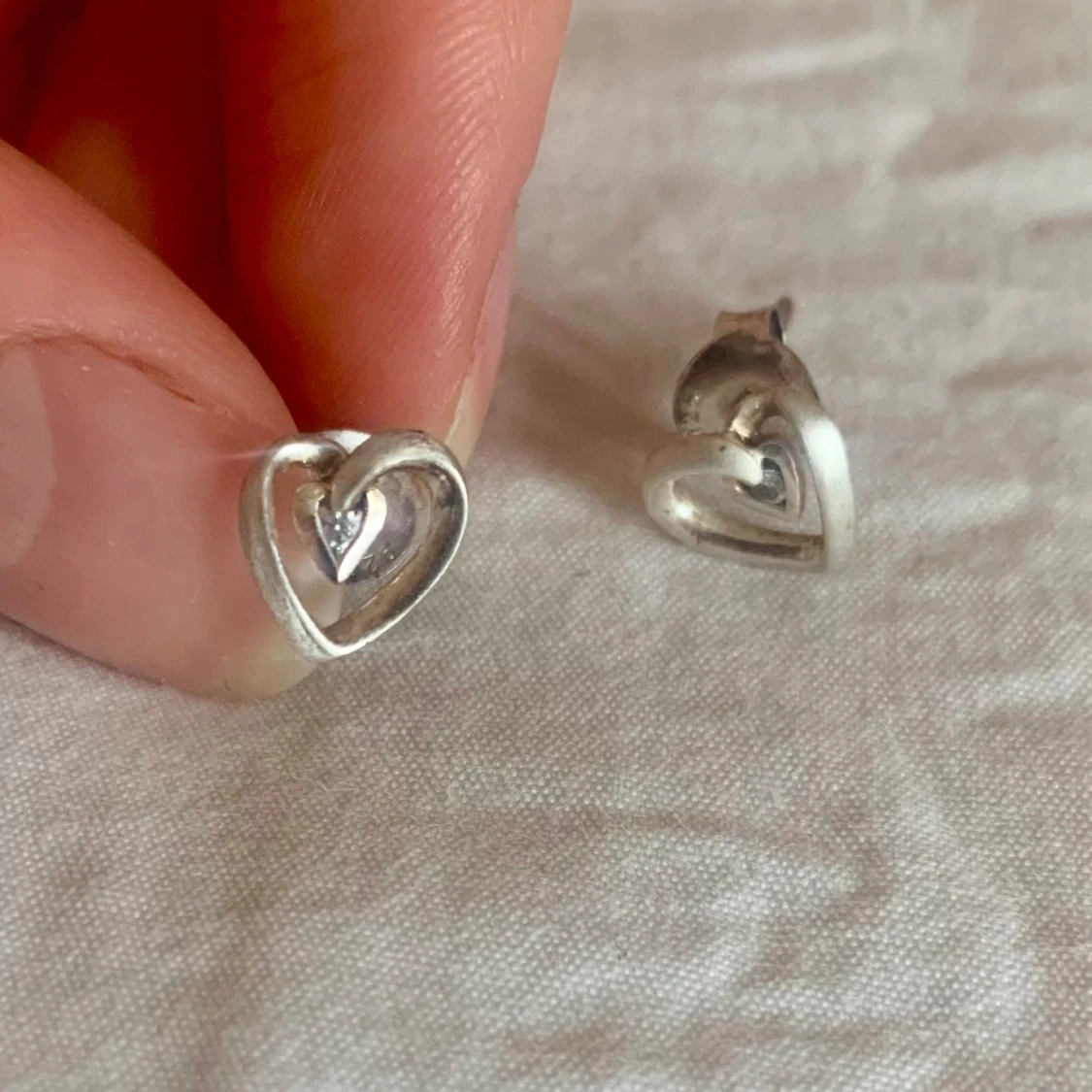 Supersöta örhängen i äkta silver med en liten sten i mitten. Jag putsar dem innan de skickas 💕