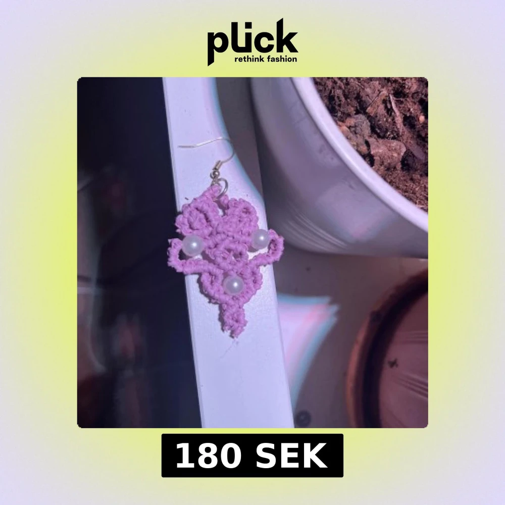 Unika handgjorda örhängen i lila med tre vita pärlor. De har en snygg, blomliknande form och hängs på klassisk krok. Perfekta för dig som vill sticka ut med ett kreativt och färgglatt smycke.