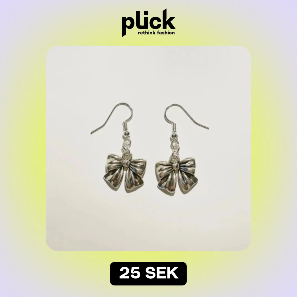 Säljer ett par supersöta handgjorda örhängen i silverfärg med en fin rosettdetalj. Perfekta för att ge en gullig touch till vilken outfit som helst. Passar perfekt till både vardag och fest!