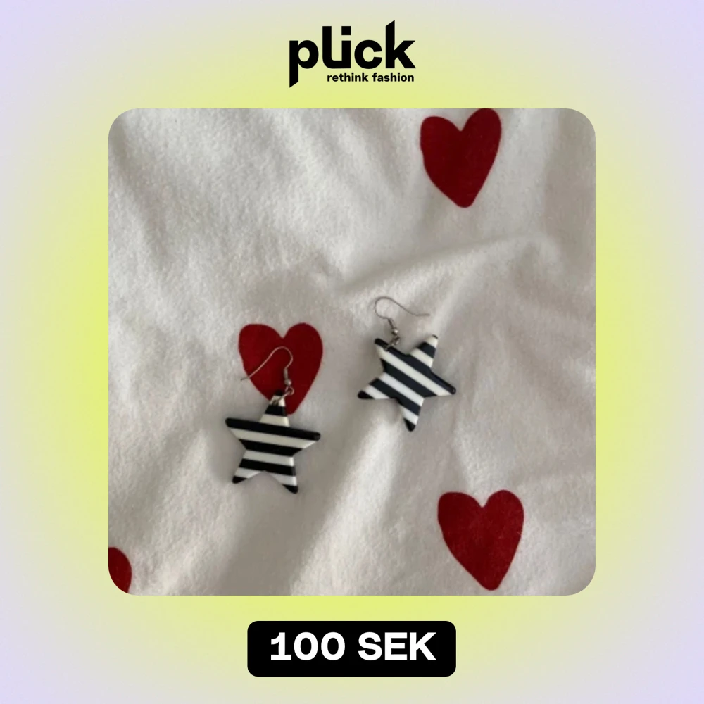 Säljer ett par supercoola örhängen i form av stjärnor med svartvita ränder. De är perfekta för att ge en edgy touch till vilken outfit som helst. Örhängena är lätta och bekväma att bära hela dagen. Perfekta för både vardag och fest!