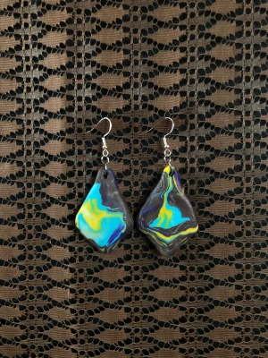 Handgjorda örhängen med hänge i silver. Ca 4,5 cm.