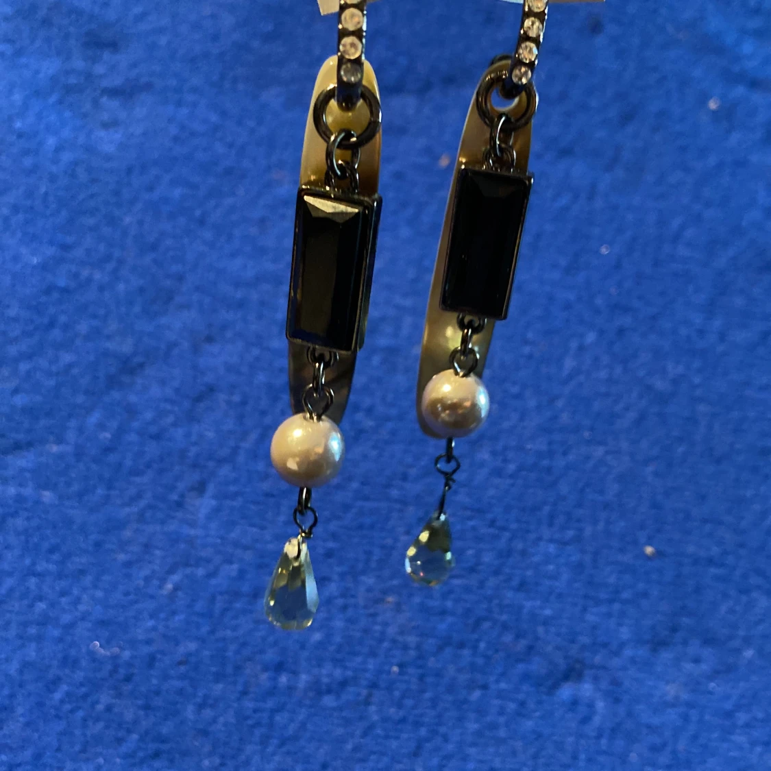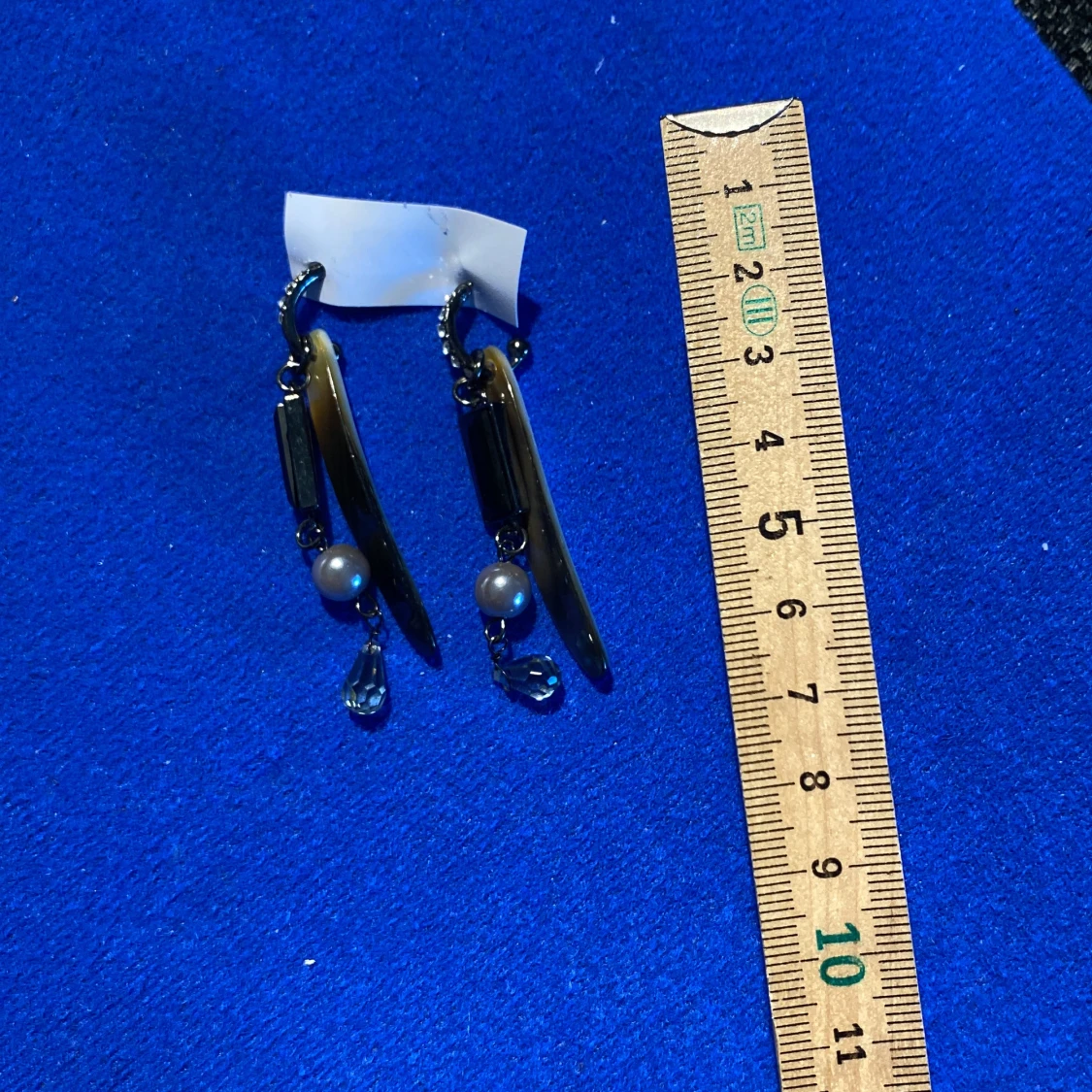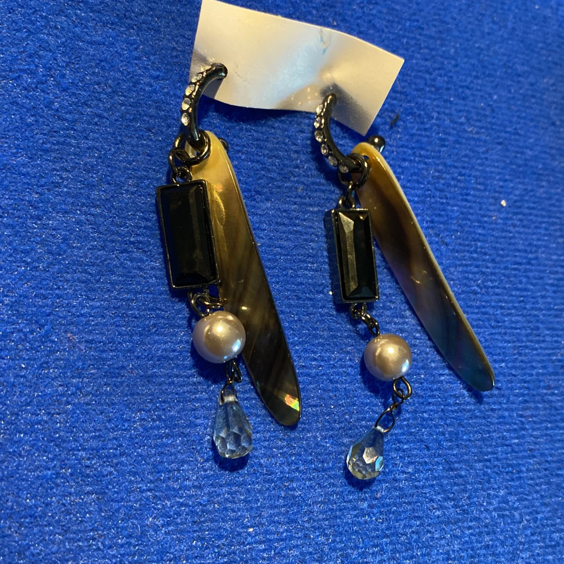Ett par vackra örhängen med abalonisnäcka, halvädelstenar och swarovskikristaller. Oanvänt.