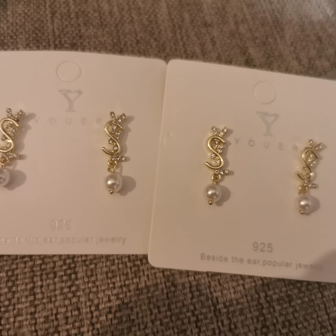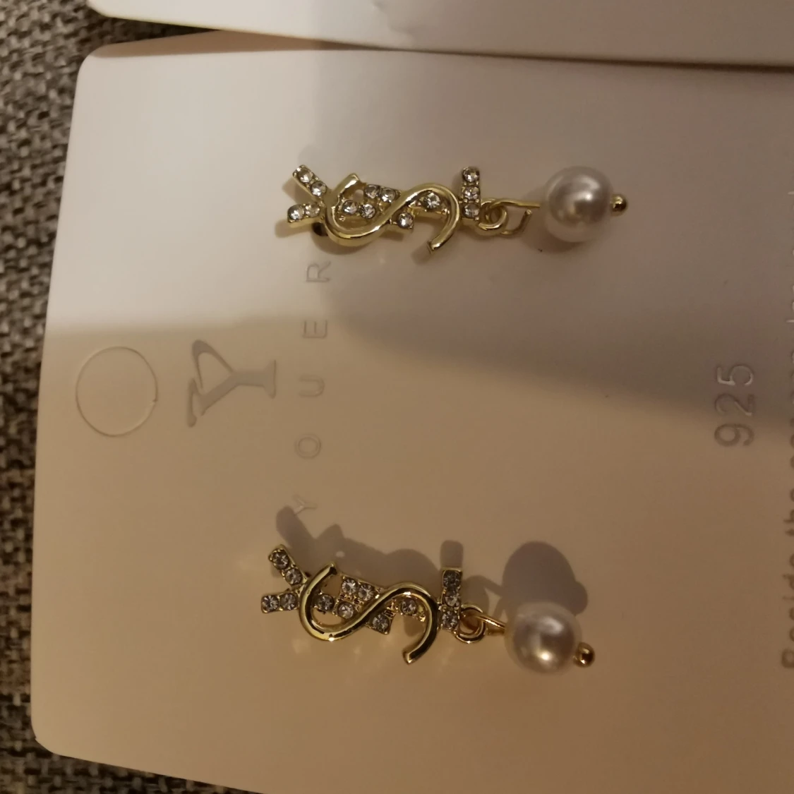 Helt nya ysl inspirerade örhängen i silver. Nickelfria. Med strass. Har 2 par.