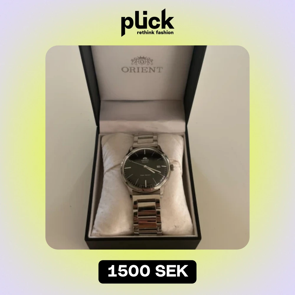 Automatisk Orient klocka med bytt band ifrån läder till stål. Extra länkar följes med. Det är en mycket fin klocka i bra skick. Inga repor eller skador. Orginalbox.