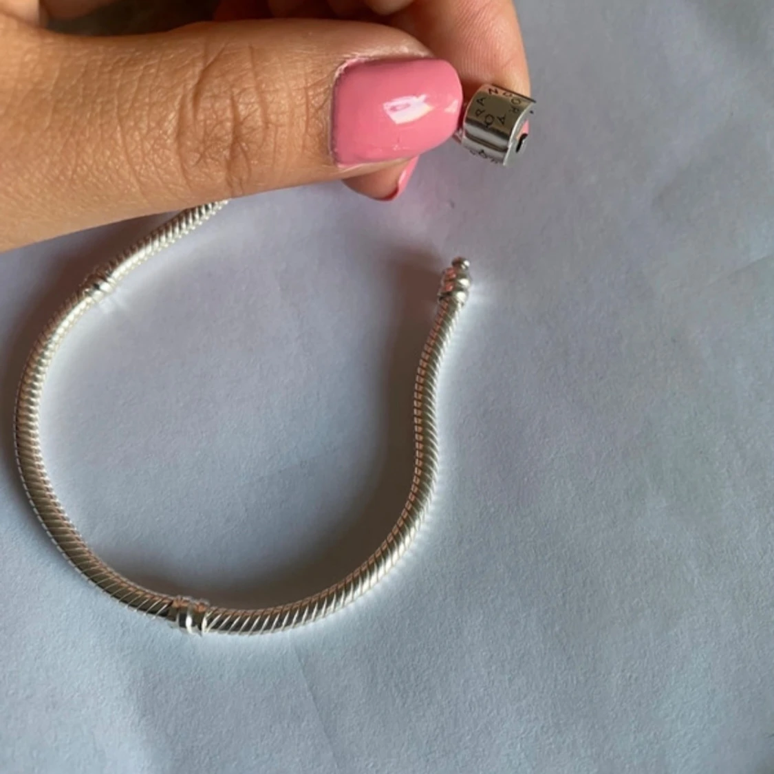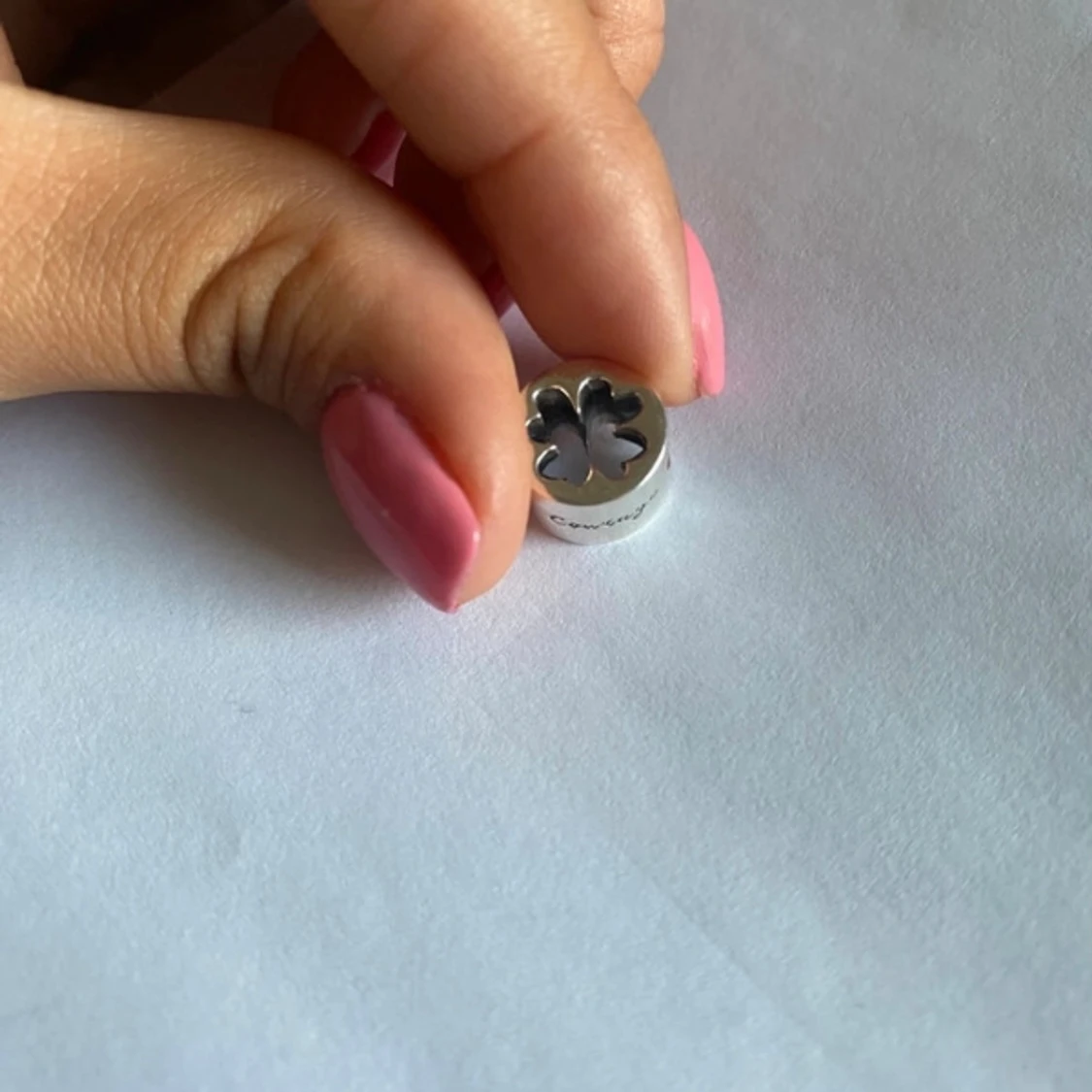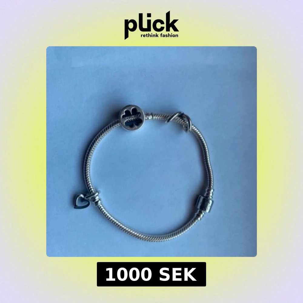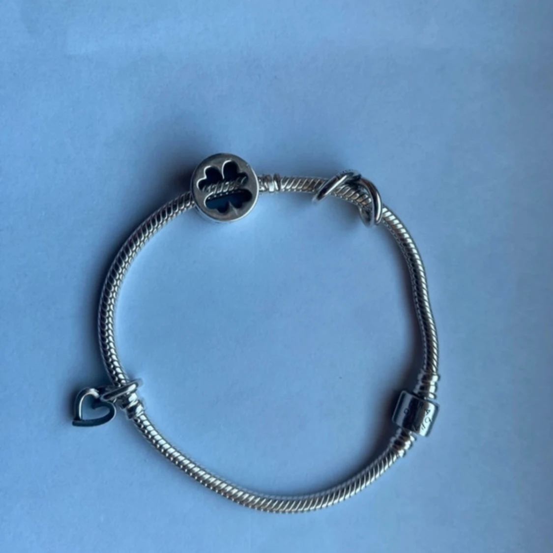 Säljer ett snyggt Pandora armband i silver med tre berlocker: en fyrklöver, ett oändlighetstecken och ett hjärta. Armbandet har klassisk design och berlockerna ger en personlig touch. Perfekt för dig som gillar att mixa och matcha smycken. Längden är 18cm