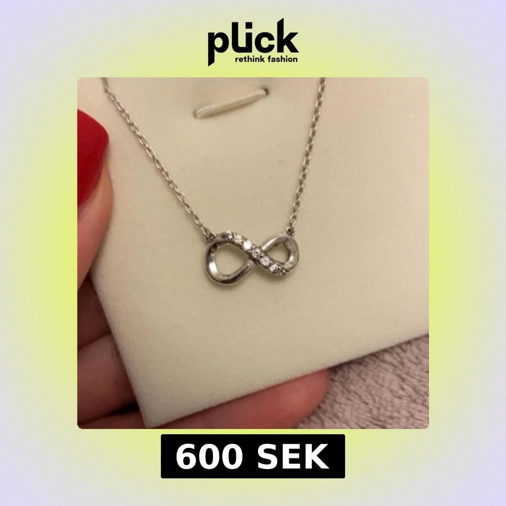 Snyggt halsband från Pandora i äkta sterlingsilver med en glittrande evighetssymbol dekorerad med små klara stenar. Märkt med S925 ALE. Använd 1-3 gånger, kommer utan förpackning.