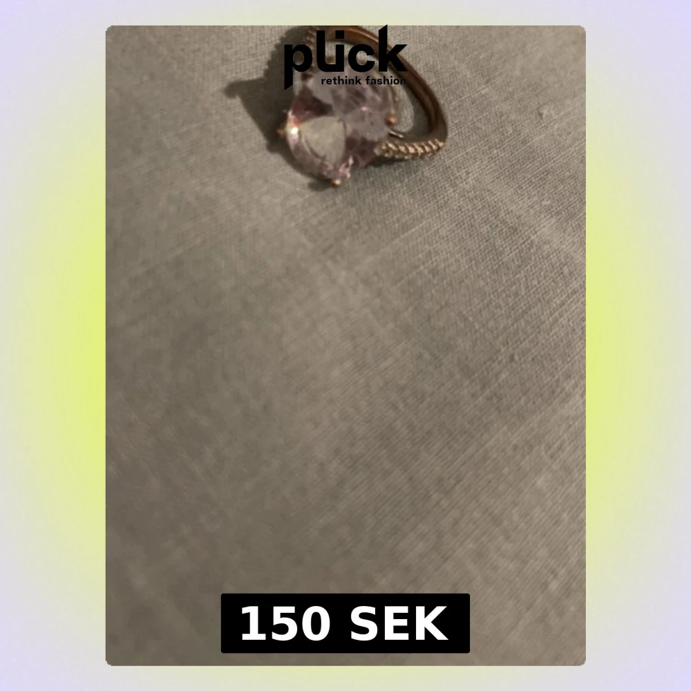En promise ring från Pandora storlek vet jag ej men känns som en M. Ljus lila som är silverfärgad med små diamanter runt.