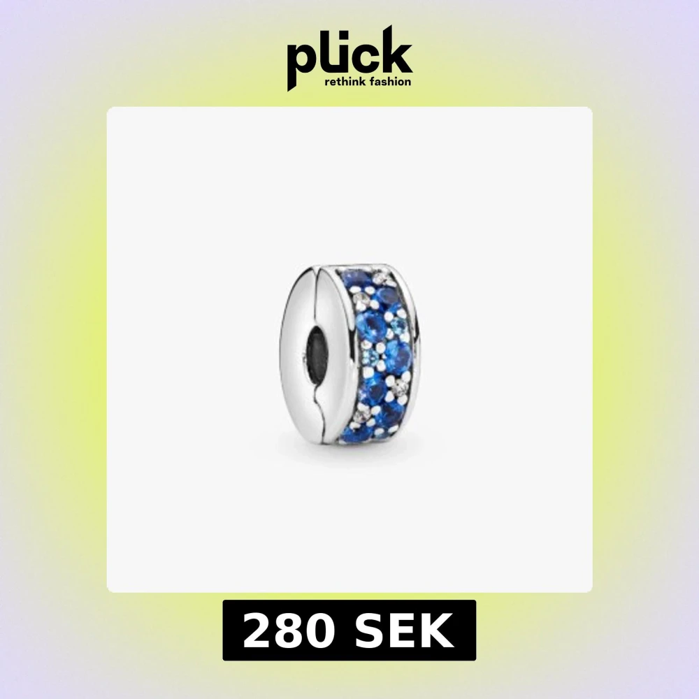 Snyggt silvercharm från Pandora med gnistrande blå och silverfärgade stenar runt hela. Perfekt att sätta på ditt armband för att ge lite extra bling och färg.