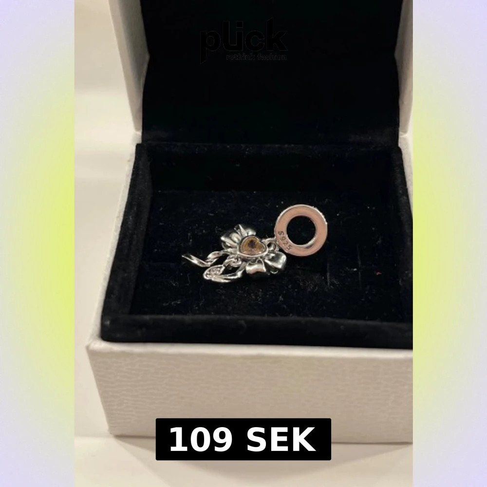 Snygg berlock från Pandora i silverfärg med en detaljrik rosett och ett litet hjärta i mitten. Perfekt att hänga på ditt armband eller halsband för att ge en personlig touch. Hjärtdetaljen har en varm ton som sticker ut mot det blanka silvret.